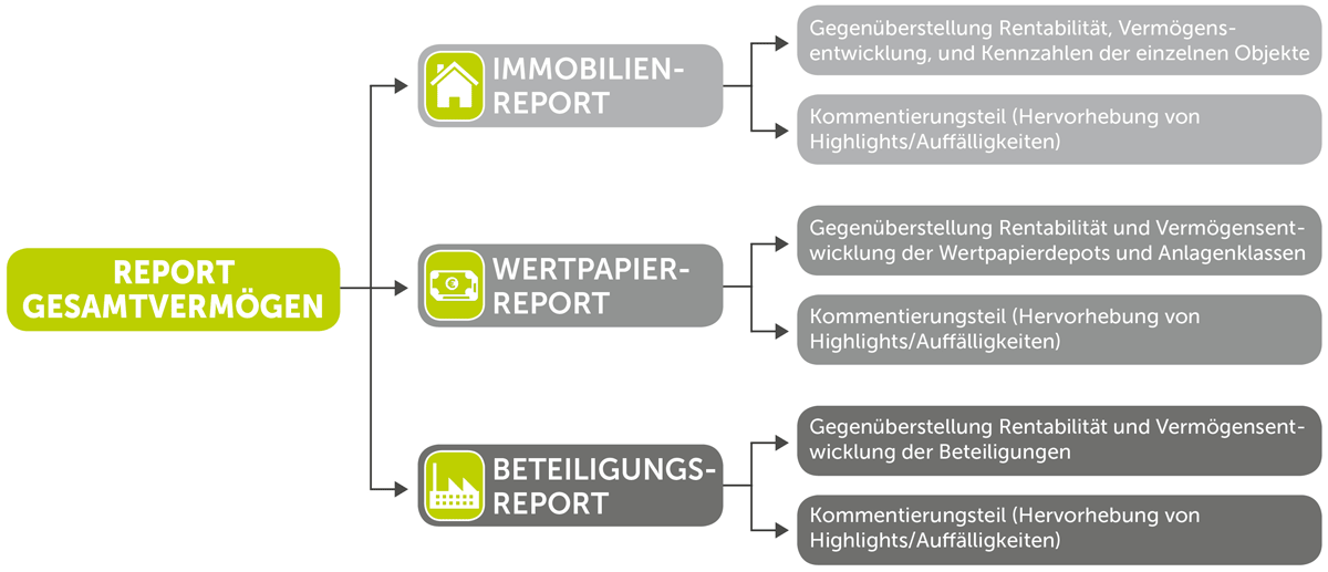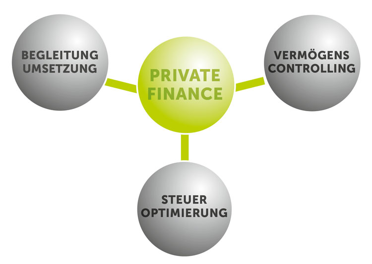 Mit der Dienstleistung Private Finance unterstützen wir Sie bei dem Management Ihrer privaten Vermögenswerte. Mit dem Vermögenscontrolling sorgen wir für eine maximale Transparenz der Vermögensentwicklung und Rentabilität der einzelnen Anlagen und liefern die Daten, die für die Bewertung von Investitionen benötigt werden und die frühzeitig Fehlentwicklungen aufzeigen. Zudem können die Kosten und Leistungen der eingesetzten Dienstleister fortlaufend kontrolliert werden.